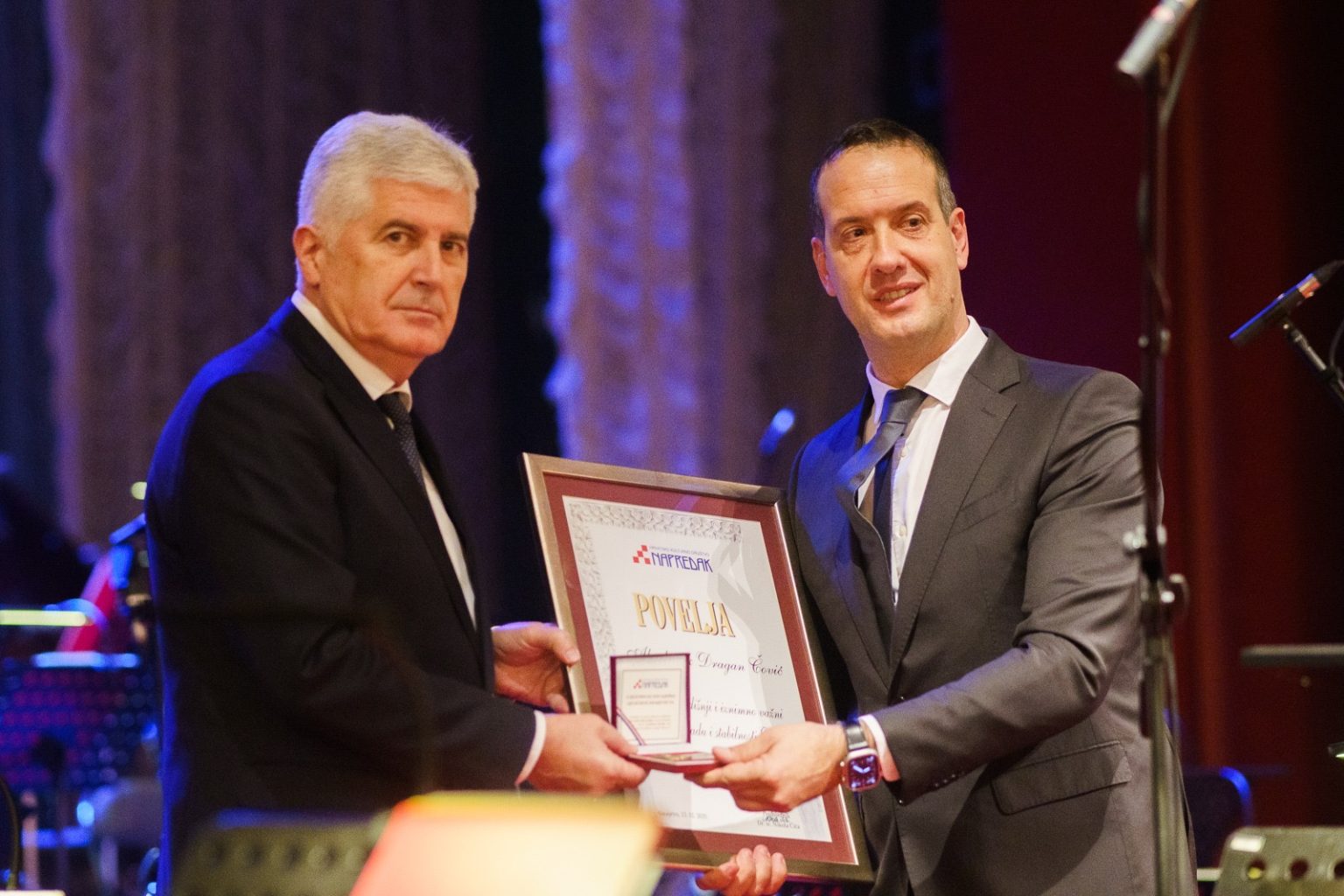 Nakon dodjele priznanja Čović se obratio nazočnima. Istaknuo je važnost kontinuiteta hrvatskoga identiteta i kulturne baštine, naglašavajući simboliku došašća i dugog povijesnog trajanja hrvatskoga naroda. Posebno je naglasio ulogu institucija poput Napretka u očuvanju jezika i kulture, ističući važnost izgradnje i očuvanja identiteta hrvatskoga naroda kroz kulturnu baštinu, kao i potrebu mudrog i odgovornog djelovanja u narednim desetljećima. Također je naglasio je važnost suradnje s institucijama u Republici Hrvatskoj, kao i s institucijama drugih zemalja te zajedničkog građenja triju identiteta u Bosni i Hercegovini kao bogatstva domovine.