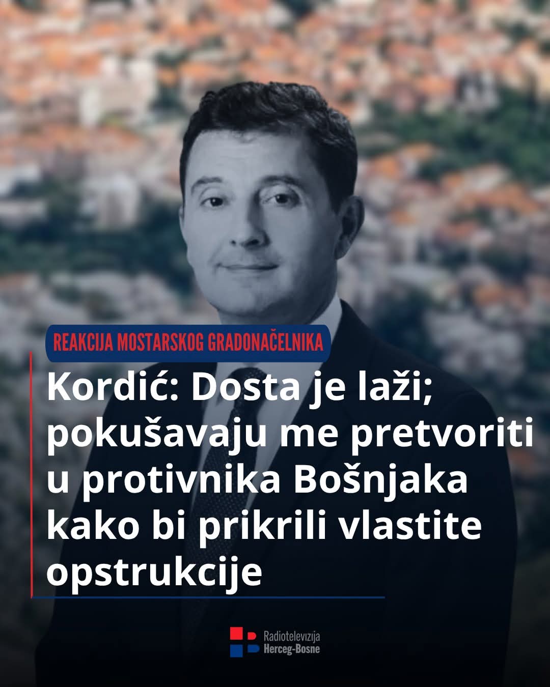 Oštra reakcija gradonačelnika Mostara. Mario Kordić odbacio je optužbe dijela bošnjačkih dužnosnika, ističući kako ga lažima pokušavaju prikazati kao protivnika Bošnjaka ne bi li prikrili vlastite višemjesečne opstrukcije i nezakonita produženja mandata u gradskim poduzećima.